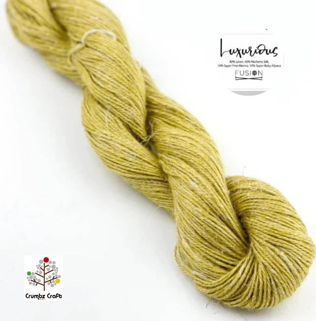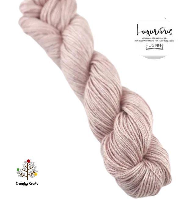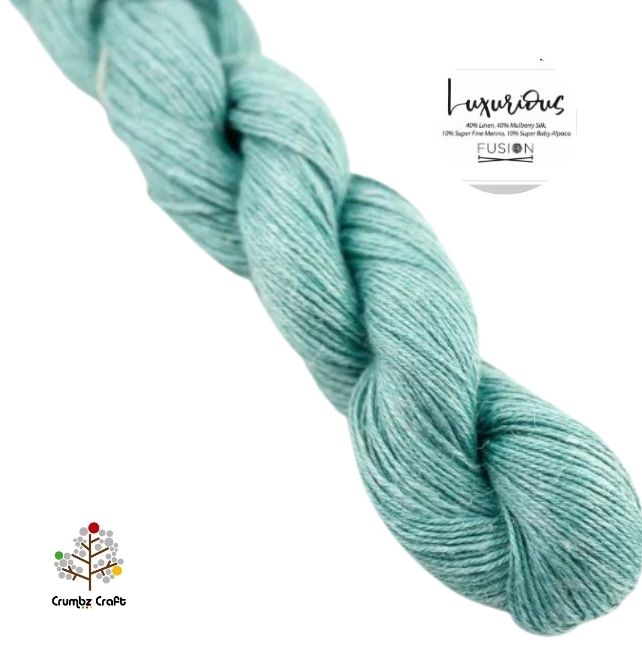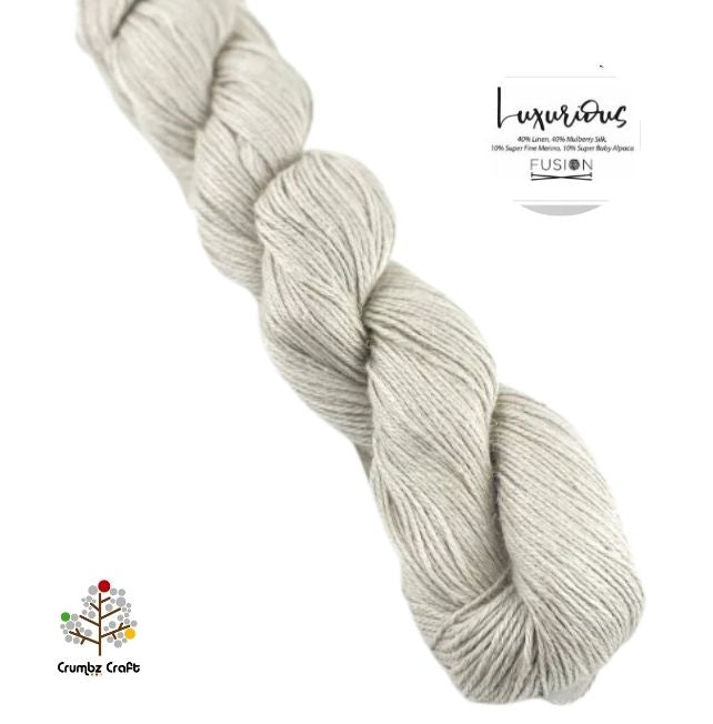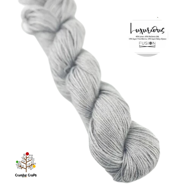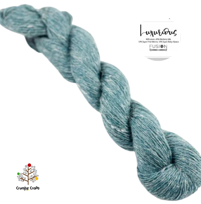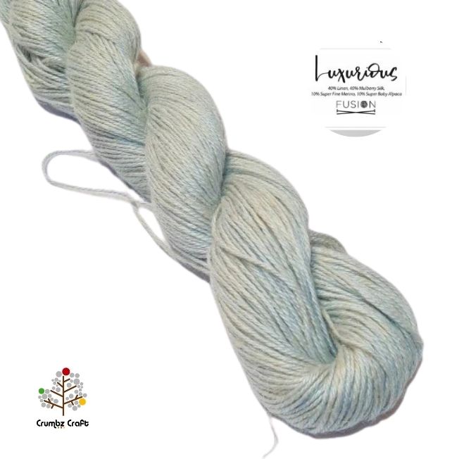 This Luxurious Fusion summer weight fingering yarn is comprised of 40% Linen, 40% Silk, 10% Super Fine Baby Alpaca and 10% Super Fine Merino. It is ideal for crocheting or knitting beautiful evening shawls, wraps and light weight cardigans.