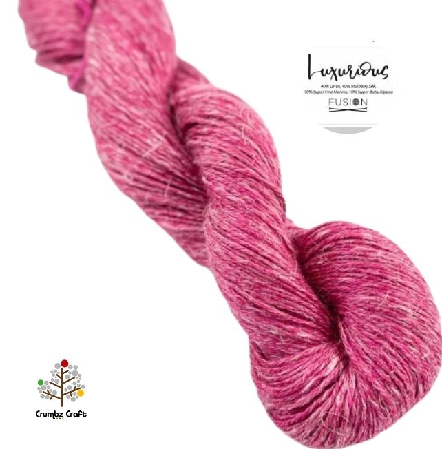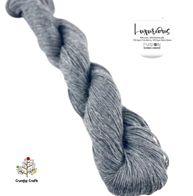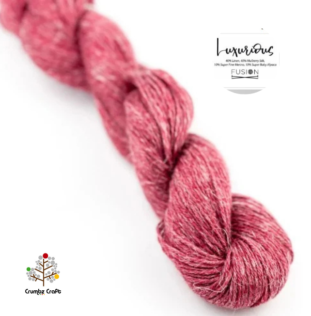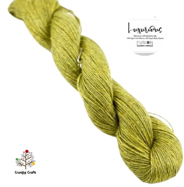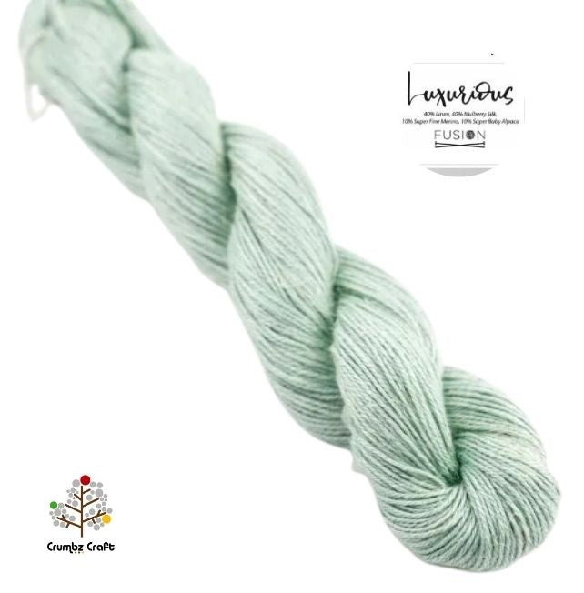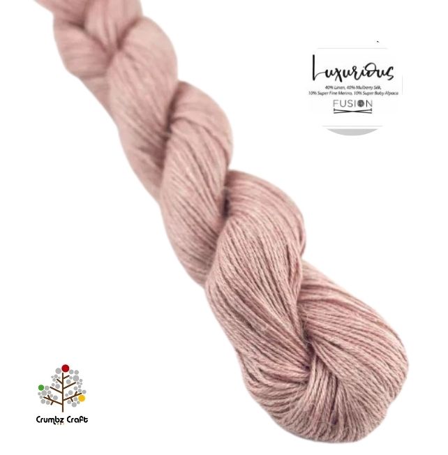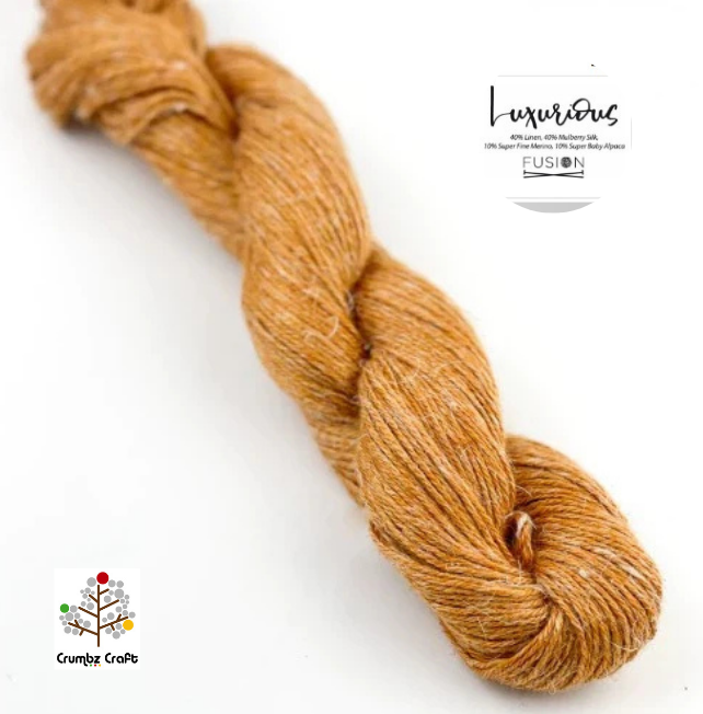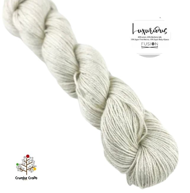 This Luxurious Fusion summer weight fingering yarn is comprised of 40% Linen, 40% Silk, 10% Super Fine Baby Alpaca and 10% Super Fine Merino. It is ideal for crocheting or knitting beautiful evening shawls, wraps and light weight cardigans.