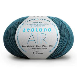 Zealana AIR is something extraordinary—an ultra soft, durable, pill-resistant yarn that is lighter and warmer than 100% cashmere. AIR features 40% of down from the brushtail possum fibre, combined with 40% cashmere and 20% mulberry silk. AIR is our most luxurious yarn.