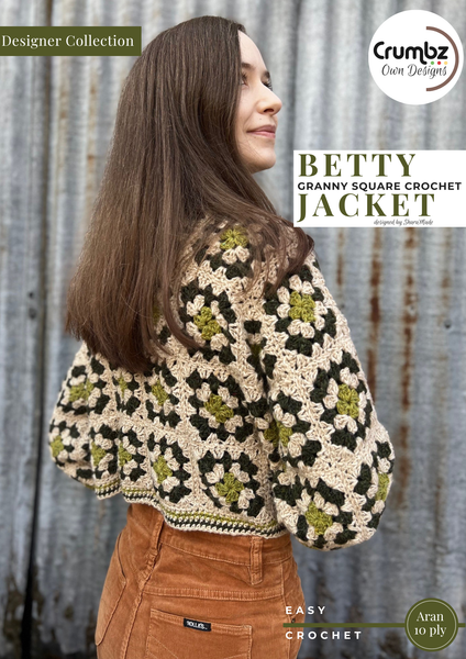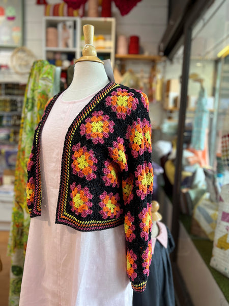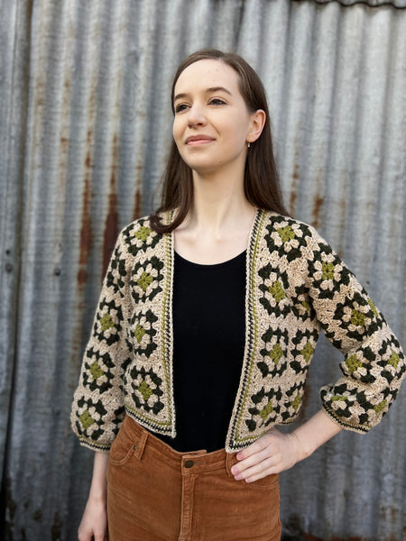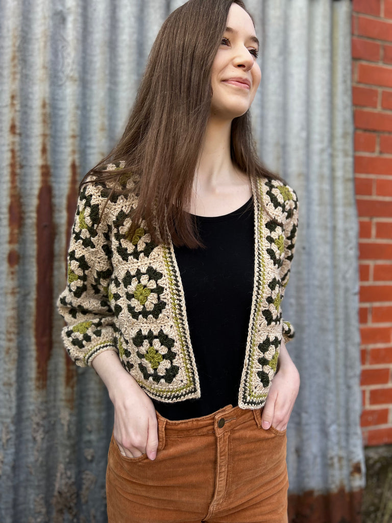 Click here to purchase the Cotton Silk Tweed Betty Granny Square Jacket Kit