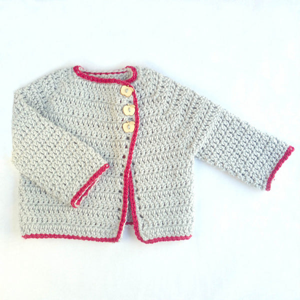 Sizes: based on chest measurement, finished jacket is a little bigger, with some positive ease. For best fit, select size according to the child's chest measurement rather than age. Approximate yarn amounts listed beside each size: