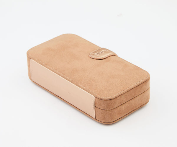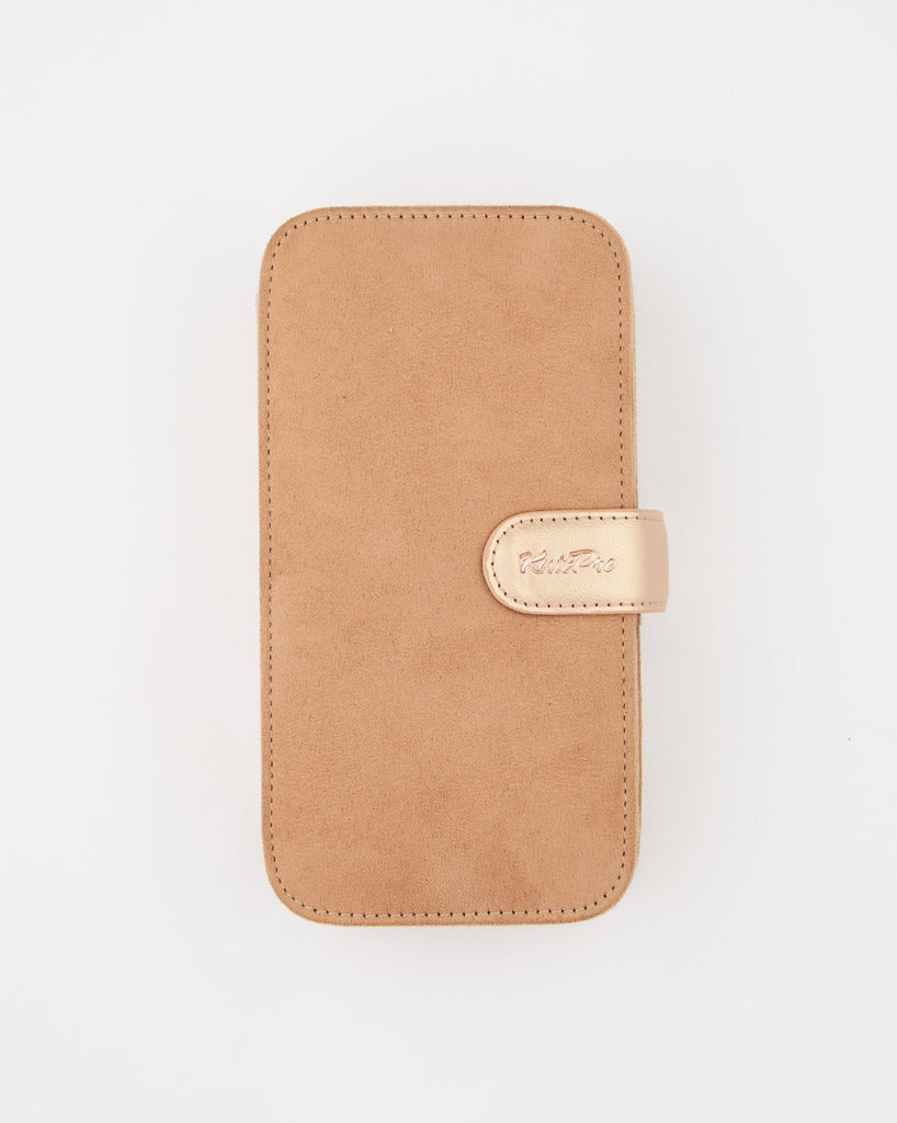 The set of 7 sizes of Single-Ended Interchangeable Crochet Hooks, a rose wooden handle and accessories are packed in a premium beige faux suede fabric case perfect for travel and storage.